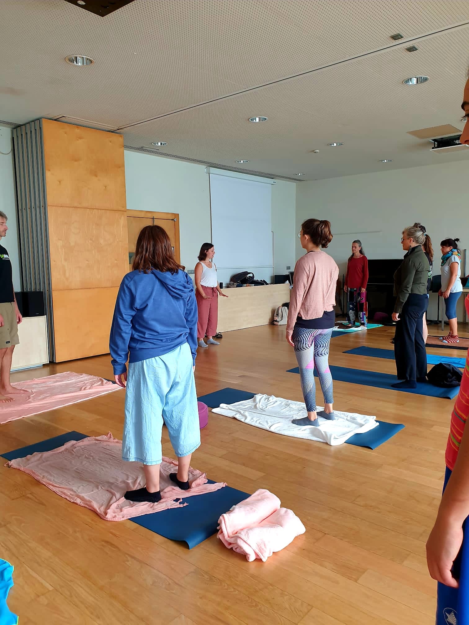 Partint des de la individualitat de cada participant, vam viatjar per algunes seqüències d’Autoconsciència a Través del Moviment, en les quals vam explorar de forma experiencial temes com l’ús de l’atenció, la reducció de l’esforç, la propiocepció i l’autoimatge en l’aprenentatge motor. Ens van resultar especialment interessants les dinàmiques en parelles on els participants van poder descobrir alguns hàbits i patrons corporals en relació amb el seu instrument musical.