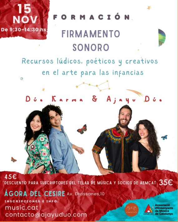 Aprofitant la visita a Barcelona d’Ajayu Dúo i Dúo Karma, El Telar de Música i AEMCAT organitzen la formació “Firmamento Sonoro: recursos lúdics, poètics i creatius en l’art per a…