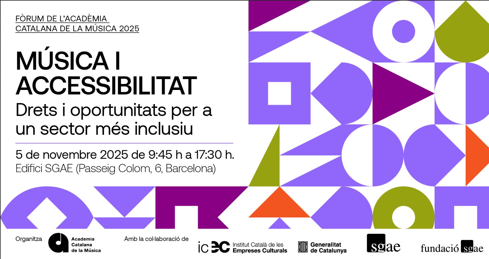 El proper dimecres 5 de novembre de 2025, l’Acadèmia Catalana de la Música celebrarà la novena edició del seu Fòrum anual, enguany dedicat a la relació entre música i accessibilitat….
